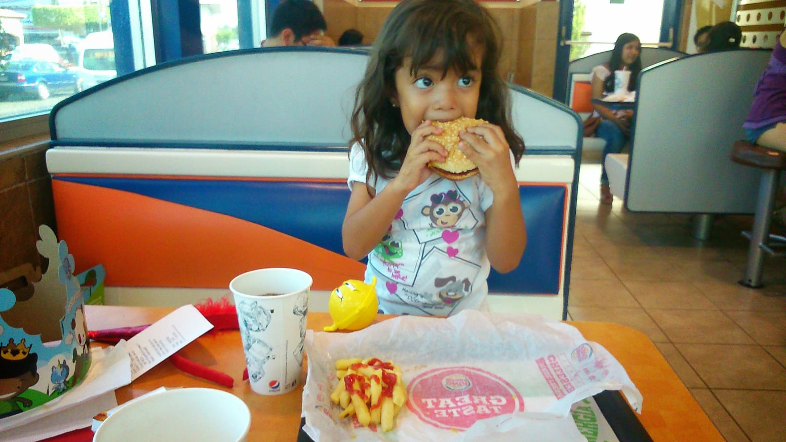 Nuggets de pollo, con papas a la francesa y sopa de coditos con jamón